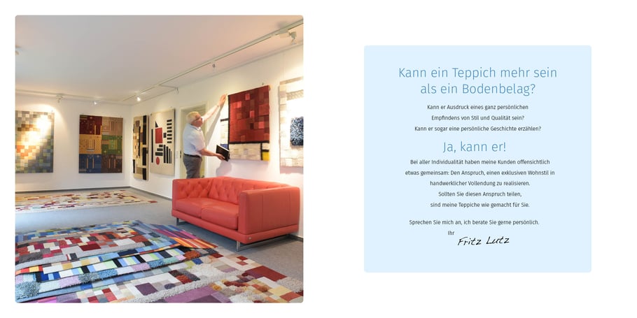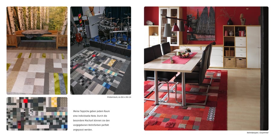 Ihren Wunschteppich fertige ich Ihnen in nahezu jeder Farbgebung, Größe und für jeden Zweck. Sprechen Sie mich an, ich besuche und berate Sie unverbindlich und kostenfrei bei Ihnen zu Hause